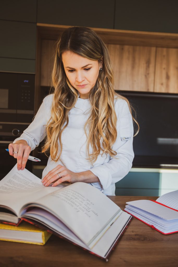 Après de longues études dans le domaine du marketing, c’est en partant vivre à l’étranger que je me rends compte avoir mis de côté mon amour pour la pâtisserie bien trop longtemps. Je me replonge alors, petit à petit, dans mes nombreux livres de recettes de pâtisseries. Je teste, j’expérimente, de la pâtisserie classique à la plus moderne, je fais d’innombrables tests, je réussis parfois, j’échoue souvent, je réessaye toujours. J’obtiens en 2020 mon CAP pâtissier que je passe en candidate libre. En parallèle, je suis une formation express dans le prestigieux institut FERRANDI de Paris, ce qui me permet de faire valider par les meilleurs professionnels du milieu mes acquis d’autodidacte.